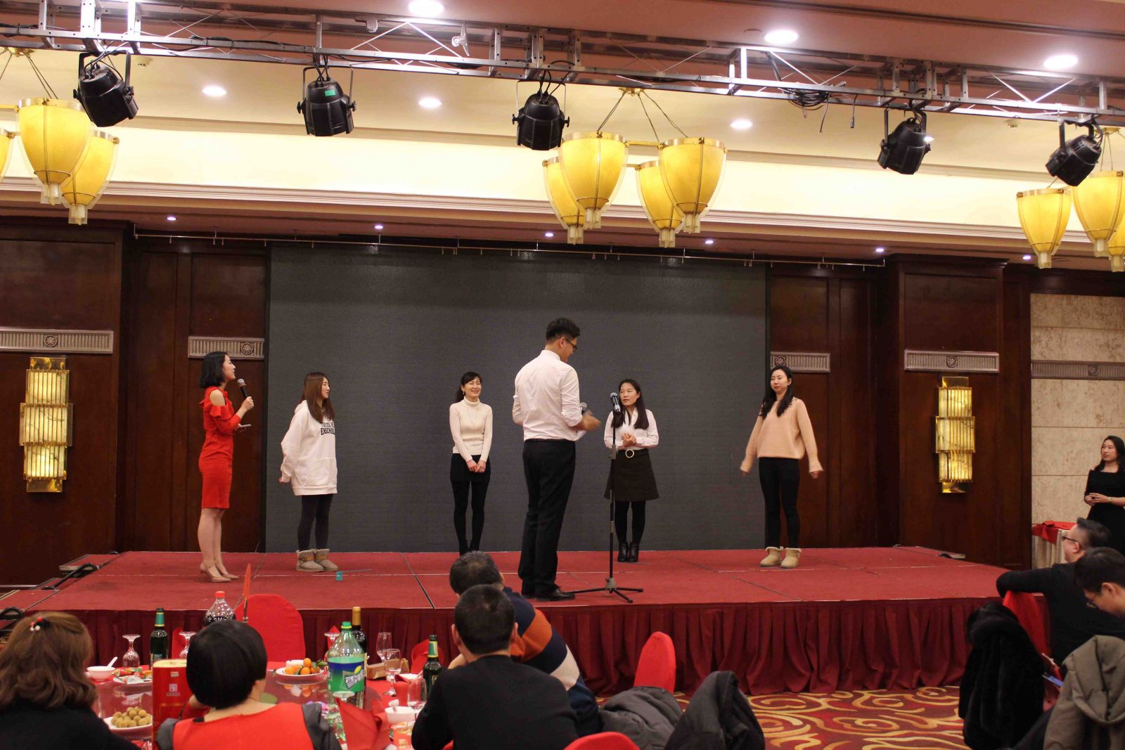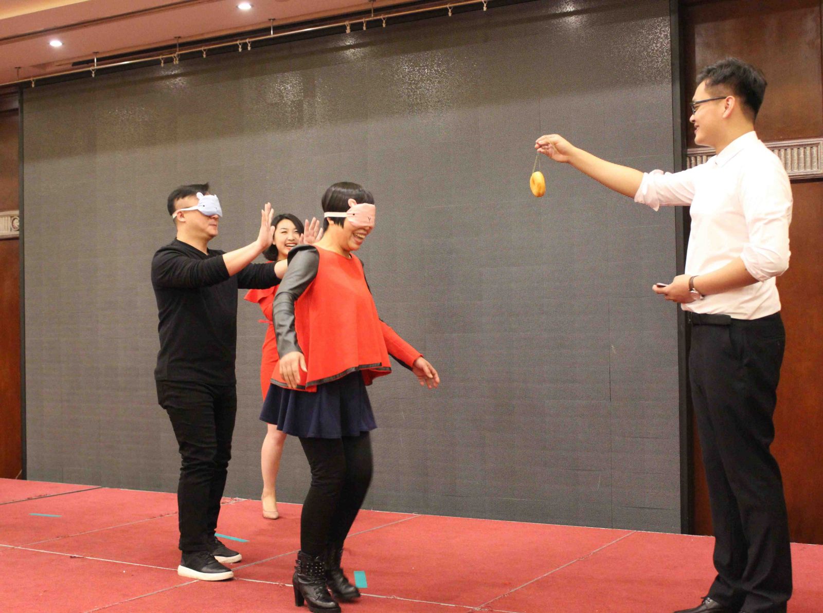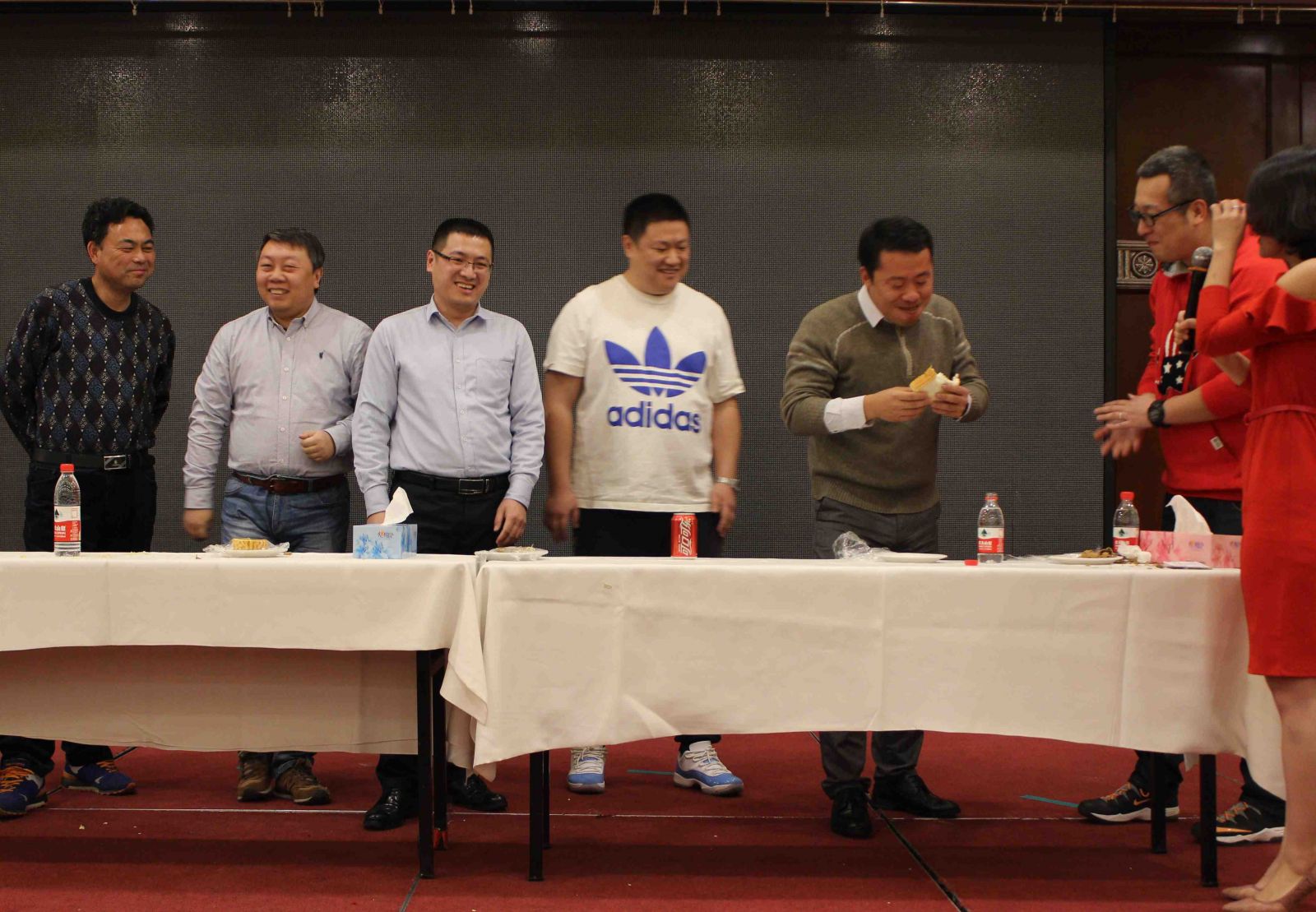 拓展環(huán)節(jié)將氣氛推向了高潮,滿場歡聲笑語。"吃掉甜甜圈"、"我愛記歌詞"、"歌曲猜猜猜"、"嘴的盛宴"等游戲涌現(xiàn)出了一批高手,凸顯了天順人才濟濟。尤其是"嘴的盛宴",隊員們在徐欣董事長的帶領下團結(jié)協(xié)作,攻克難關,最終成功完成了任務。"團結(jié)"、"克難"、"聚力"、"共贏"貫穿整個拓展環(huán)節(jié),每位家人都受益匪淺。